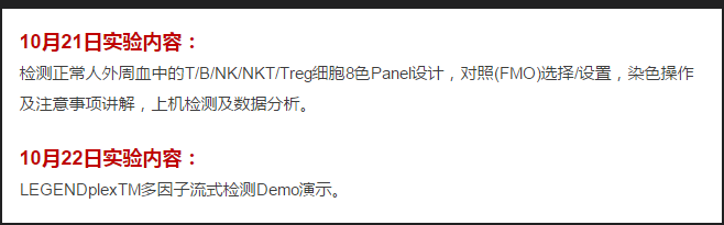 黃金十月,達(dá)科為流式培訓(xùn)班要來沈陽啦,專業(yè)講解,理論與實(shí)驗(yàn)雙管齊下,輕松完成流式八色檢測分析,更有LEGENDplexTM多因子Demo演示。流式上機(jī)名額有限,歡迎踴躍報名!