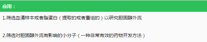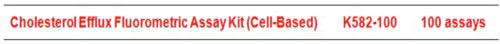 BioVision膽固醇外流檢測試劑盒Cholesterol Efflux Fluorometric Assay Kit (Cell-Based) cat#K582-100 是目前市售的唯一沒有毒性的膽固醇外流檢測試劑盒,其原理是利用熒光標記膽固醇,以高通量檢測細胞中的膽固醇外流。