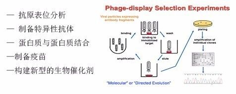 是一項篩選技術,將外源多肽或蛋白與噬菌體的衣殼蛋白融合表達,融合蛋白展示在病毒顆粒的表面,而編碼該融合子的DNA則位于病毒粒子內。
