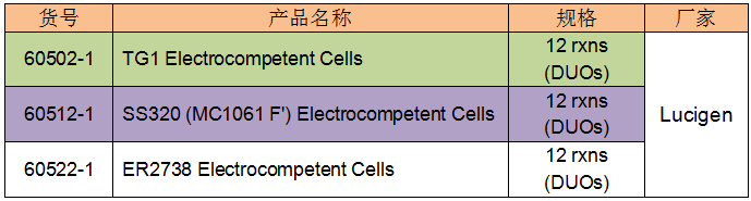 用于噬菌體展示文庫篩選,轉化效率是Stratagene的2-4倍
