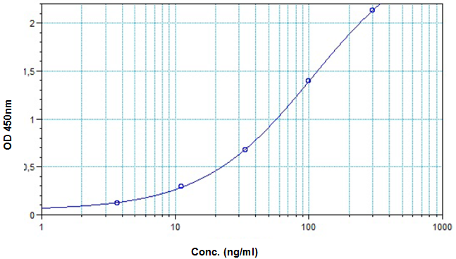 圖例:BioSim?利妥昔單抗ELISA試劑盒的標(biāo)準(zhǔn)曲線圖。(Cat.No. E4371)