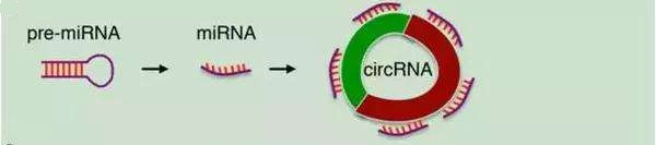 直到2012年,Salzman的一篇環狀RNA文章為其正名,于是大量的研究者涌入這個領域,不斷產出環狀RNA的研究成果。目前研究較多的就是位于細胞質中的外顯子形成的環狀RNA,其含有大量miRNA結合位點,可起到miRNA海綿作用,結合并封閉miRNA的調控作用,從而使其靶基因表達增強。