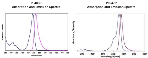 *注:PF488P(EX/EM:488nm/516nm);PF647P(EX/EM:633nm/654nm)