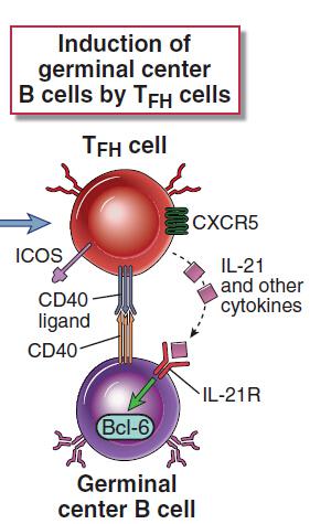 ICOS: Tfh 細胞上的 ICOS 與 B 細胞上的 ICOS-Ligand 作用,傳遞協(xié)同刺激信號,對 Tfh 細胞的產(chǎn)生及存活、 IL-21 的表達、發(fā)生中心的形成及特異性抗體的產(chǎn)生都至關重要。